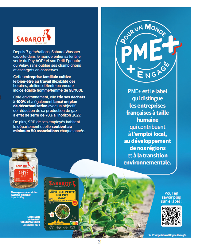 Pour les clients désireux d'approfondir leurs connaissances sur le label PME+ et les entreprises labellisées (activités, marques, localisation, engagements RSE, etc.), un QR code dédié est intégré, permettant un accès direct au site officiel du label.