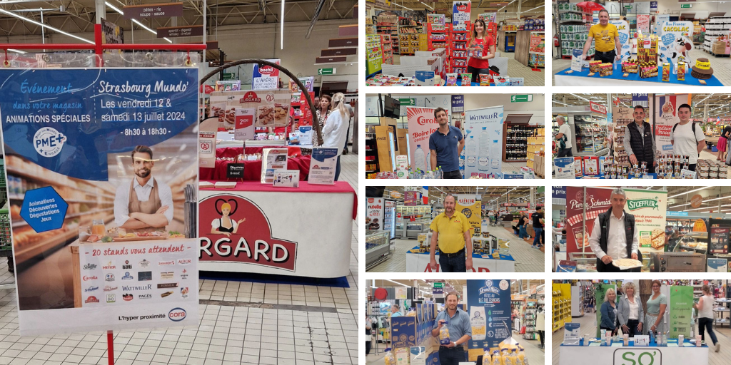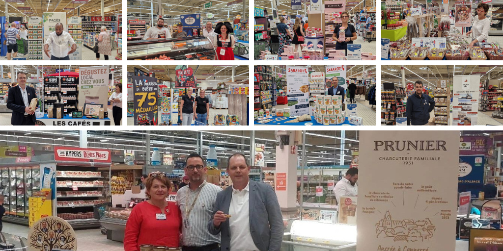 L'Angélys, Fossier, Lucien Georgelin, St Hubert, Grain de Sail, Alélor, Boehli, Grand'Mère (Heimburger), Sabarot, Carola/Wattwiller, Les Cafés Sati, Météor, Cacolac, Pagès, Prunier, Pierre Schmidt/Stoeffler, Maison Adam, Alliance Producteur (Debroas), Burgard et Sobio Etic (Léa Nature) ont fait découvrir aux clients de l'enseigne leurs produits à travers des dégustations et ont partagé leurs engagements RSE et leurs actions contribuant à l'emploi local, au développement de nos régions et à la transition environnementale.