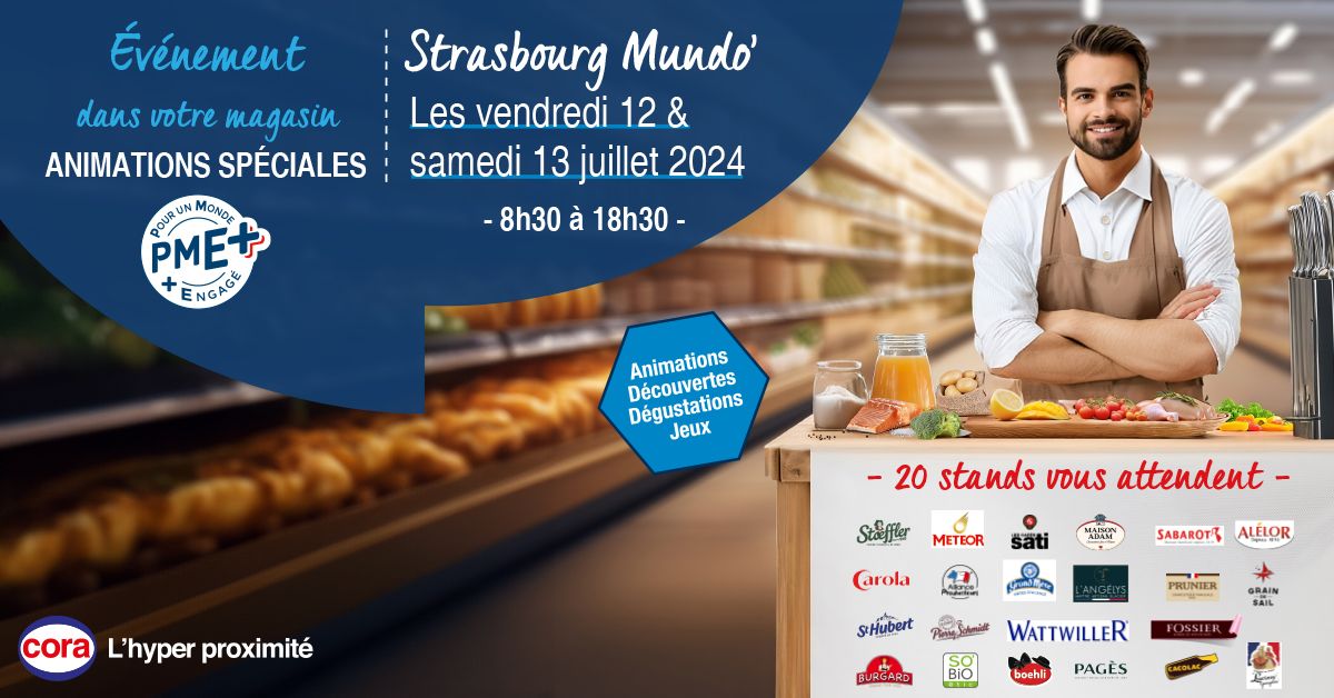 Vendredi 12 et samedi 13 juillet 2024, Cora a donné rendez-vous à ses clients au magasin Cora Mundo près de Strasbourg pour un événément inédit à l'occasion des 10 ans du Label PME+.