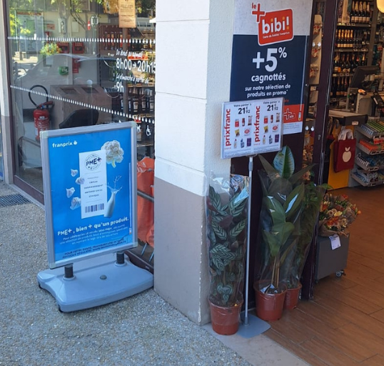 En magasin : avec des affiches stop trottoirs pour une visibilité accrue de l'opération auprès des consommateurs