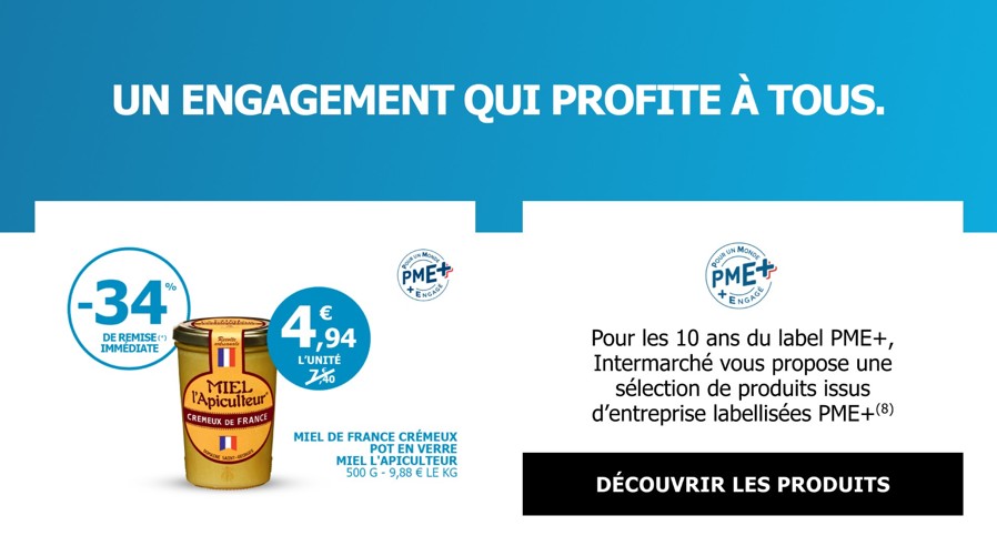 Pendant deux semaines, les clients de l'enseigne pourront découvrir en magasin et dans la communication d’Intermarché des produits issus d’entreprises labellisées PME+.
