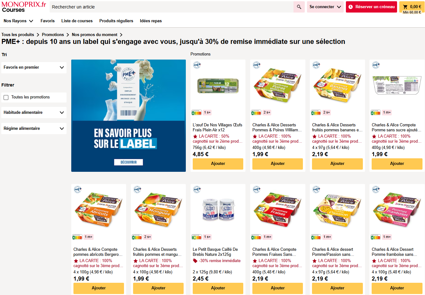 - Une expérience shopping en ligne optimisée : Sur le site de courses en ligne avec des bannières pour guider les consommateurs vers la boutique PME+ où ils retrouveront les offres promotionnelles présentes en magasin.