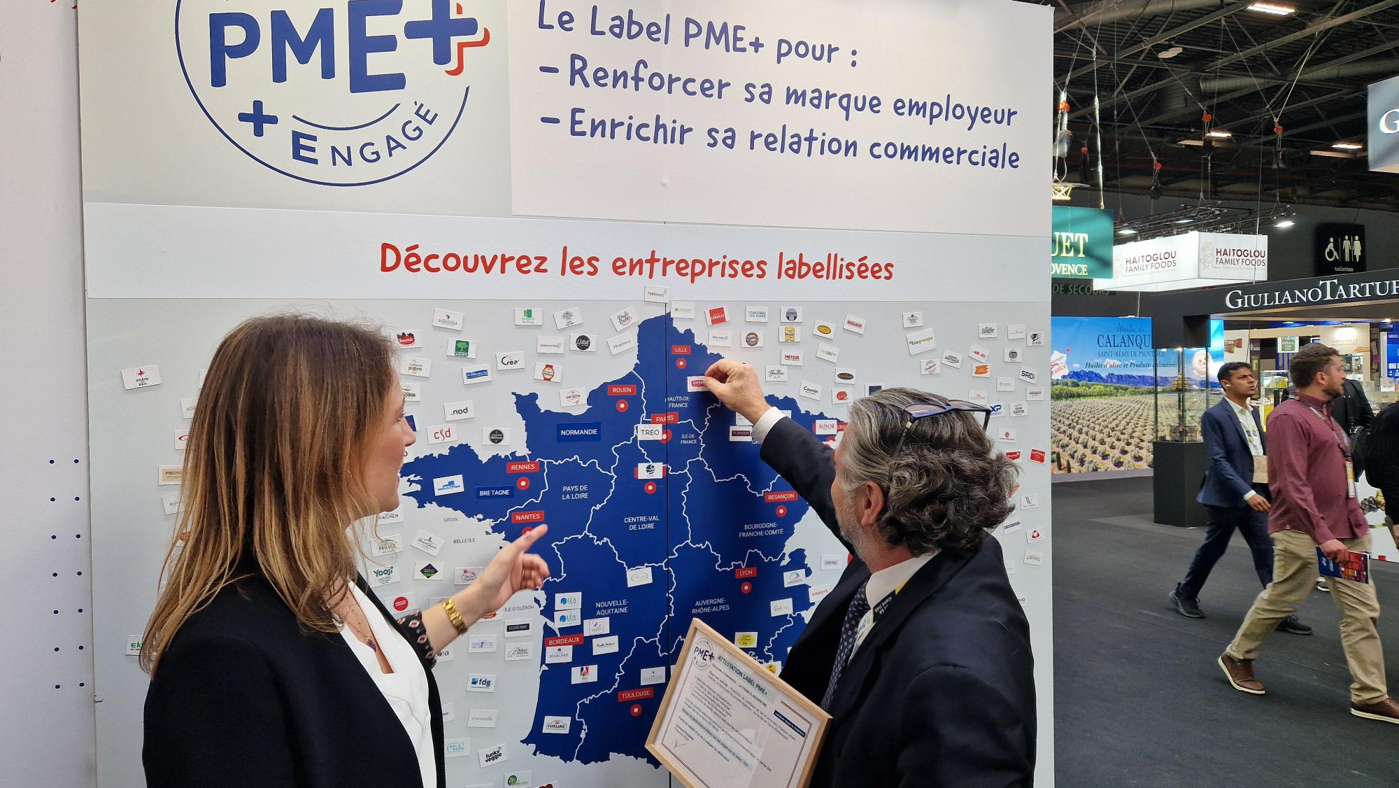 Une fois sur le stand, les visiteurs étaient invités à replacer 5 PME+ dans leur région sur la carte de France.